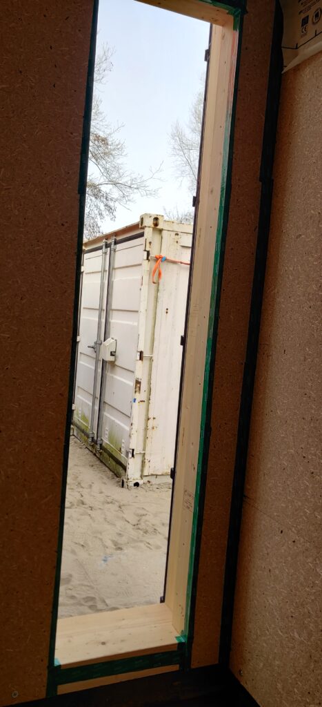 Op zaterdag heb ik de eerste naden met luchtdicht tape afgeplakt. (ik had 3 rollen)