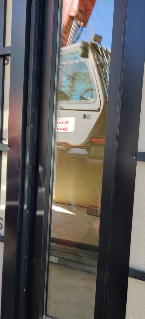 Het glas moest eerste van buiten naar binnen om daar in het kozijn geplaatst te worden.